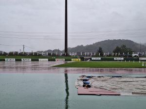 当日は午前中からあいにくの雨となり、競技場には水たまりができるなど、コンディションは厳しい状況でした。しかし、昼過ぎには雨も上がり、社員全員が力を合わせて競技に臨みました。